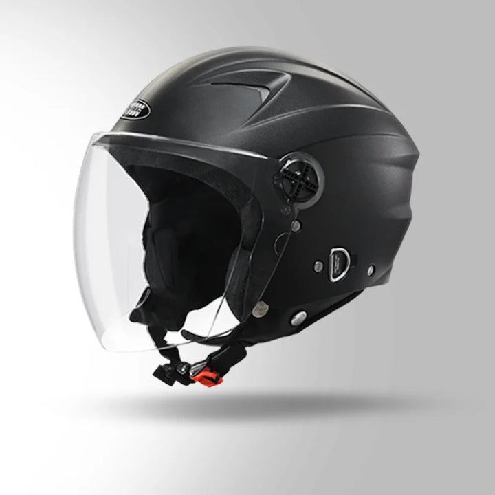 A lightweight helmet with certification from ISI, gives you a freedom to roam around the streets in your city without worrying about the safety of rider. RAY is an open face motorcycle and two-wheeler helmet for both men and women riders. RAY is a high impact open face helmet with product features like hypoallergenic liner, quick release chin strap and top air vents.