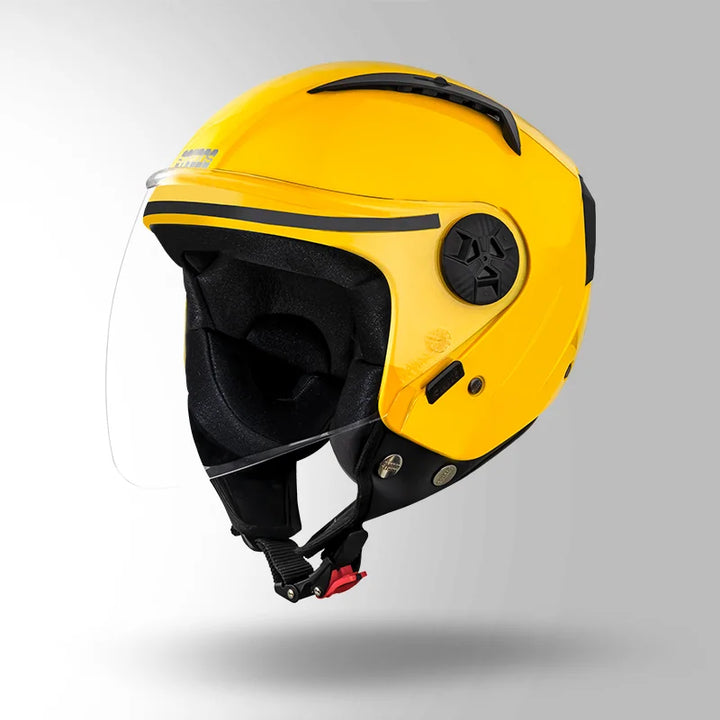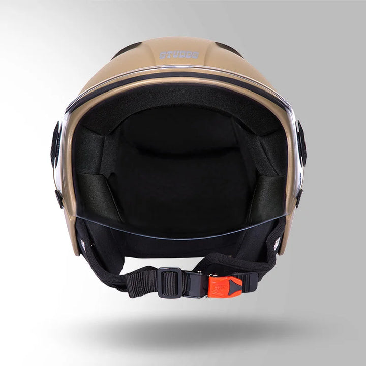STUDDS VOGUE ECO is an open face motorcycle and two-wheeler helmet for both men and women riders. VOGUE ECO is a high impact open face helmet with product features like hypoallergenic liner, regulated density EPS, quick release chin strap and top air vents. VOGUE is available in various sizes and vibrant color options. It redefines lightweight comfort without compromising on safety. ISI certified, its robust shell ensures optimal impact resistance. The hypoallergenic, removable, and washable interior provides unmatched comfort. With advanced ventilation, a quick-release buckle, and a range of vibrant colors, the Vogue ECO is a fashion-forward choice for riders who demand style, safety, and freedom on the road.